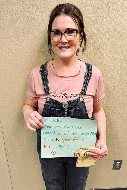 Cathy Butenhoff, head cook at Ellen Hopkins Elementary reflected on the week with this note to her students, "Thank you for your beautiful pictures and letters. To answer some of your questions, we get up at 4:30 am every morning to get your breakfast and lunches ready. We love what we do and laugh a lot. We are as old as you think. Have a great day!"