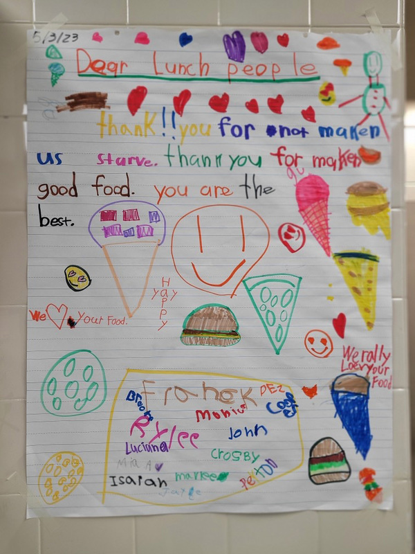 Students shared their appreciation for the food and nutrition services staff at their schools in heartwarming ways.