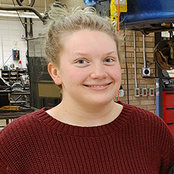 Erin Herbrandson would like to see new woodworking machines. Erin looks forward to more hands-on classes and experiences, in another environment from the regular school building.